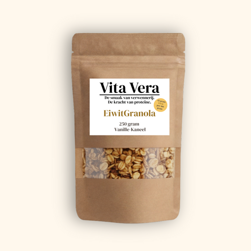 Dankzij het hoge eiwitgehalte is Vita Vera Granola de ideale start van je dag. Het houdt je langer verzadigd en voorkomt onnodige snack-attacks, zodat je je volledig kunt focussen op wat echt belangrijk is.