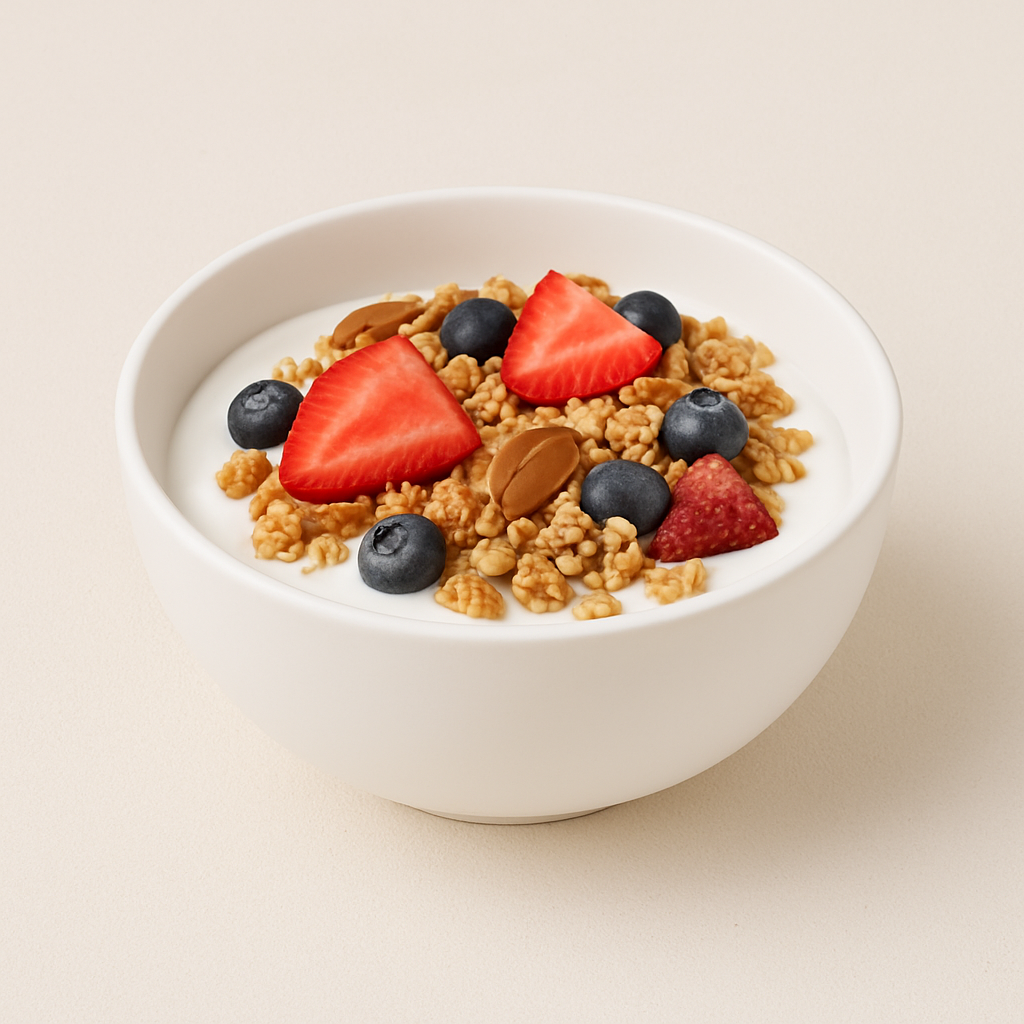 Waar kale kwark vaak flauw en eentonig blijft, zorgen onze EiwitGranola en wat fruit voor smaak, crunch en voedingsstoffen die je dag krachtig laten starten.