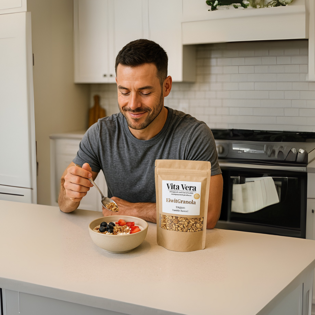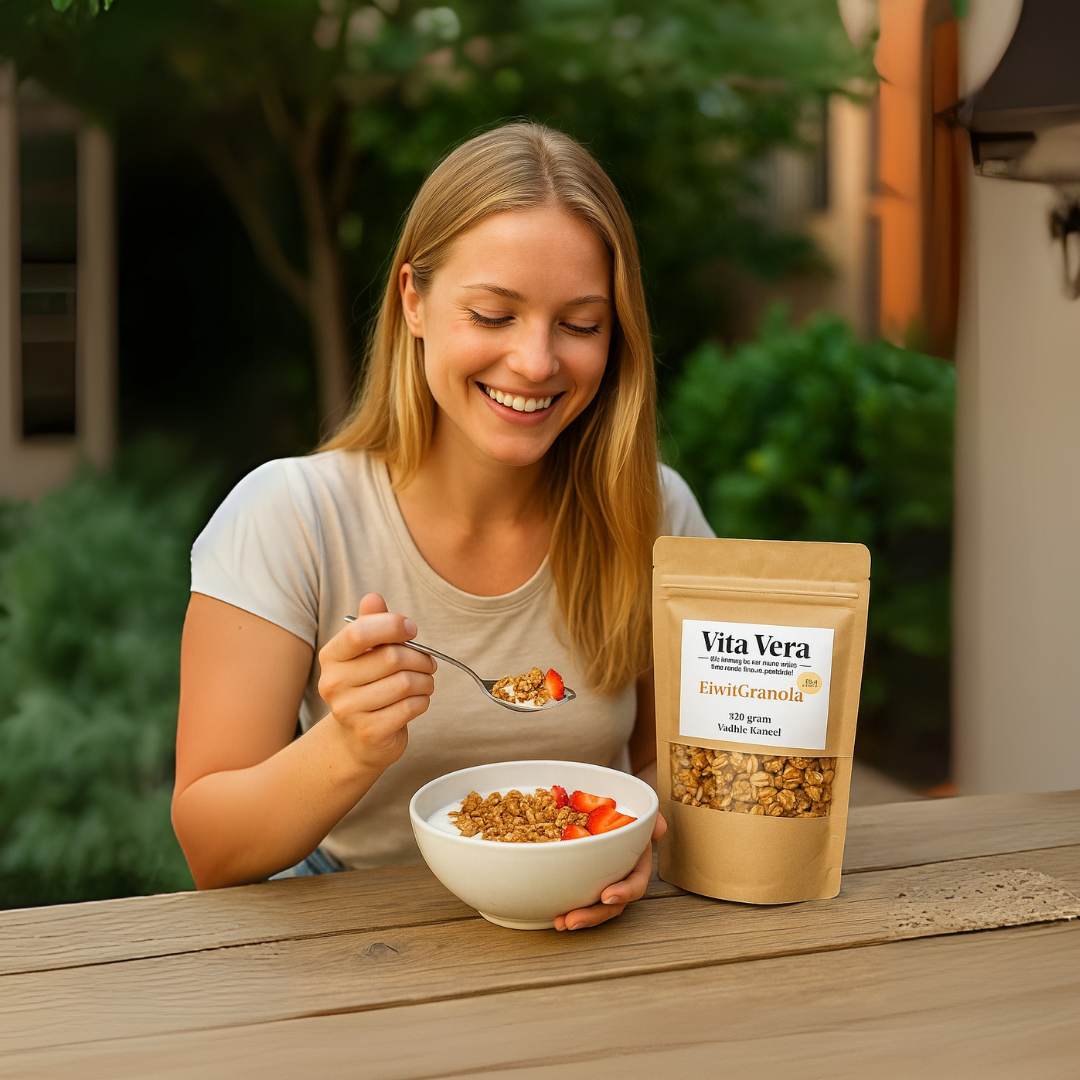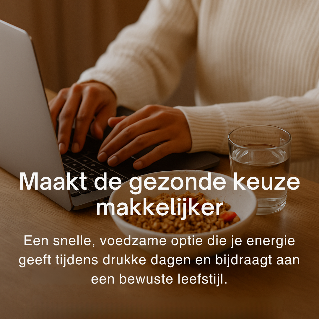 Naast vezels en koolhydraten levert granola ook van nature vitamines en mineralen, zoals B-vitamines, ijzer en magnesium. Deze voedingsstoffen zijn belangrijk voor je energiehuishouding, je weerstand en je algehele gezondheid.