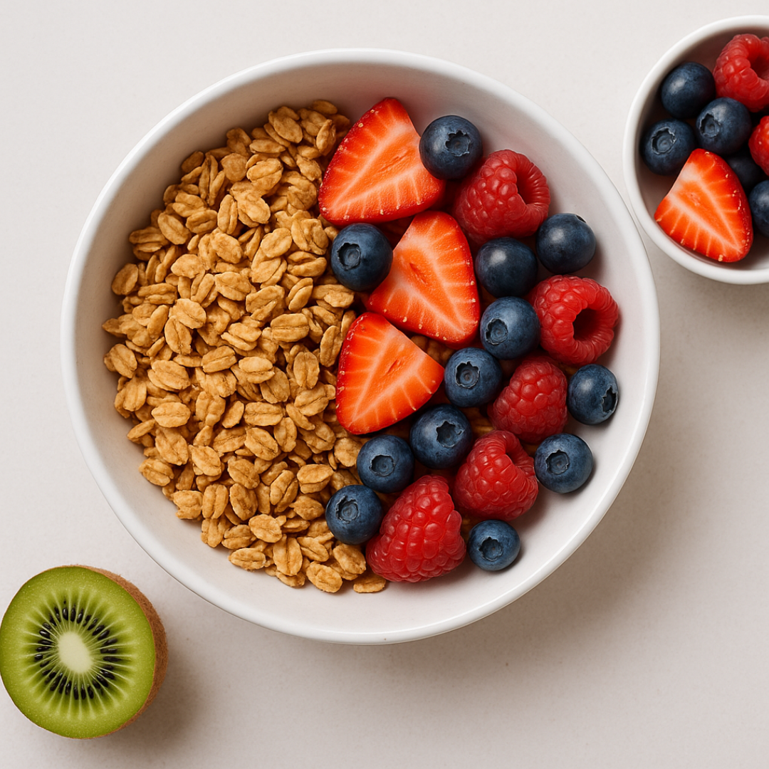 De havervlokken in granola bevatten complexe koolhydraten. In plaats van een snelle piek geven ze je lichaam geleidelijk energie vrij. Zo blijf je langer stabiel en voorkom je die bekende dip die vaak volgt na een suikerpiek.